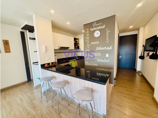 Moderno Apartamento de 82Mts2, ubicado en piso 5 con vista interior, sol de la tarde, area social, balcón, baño social, moderna cocina abierta, zona lavandería independiente, 2 alcobas de buen tamaño, ambas con baño privado con ventilación natural, 1 garaje cubierto y deposito. Edificio construido 8 años, cuenta con gimnasio, terraza bbq, salon social, parqueadero de visitantes, vigilancia 24/7. Excelente ubicación cerca a parques, restaurantes y centros comerciales, buenas vías de acceso.
