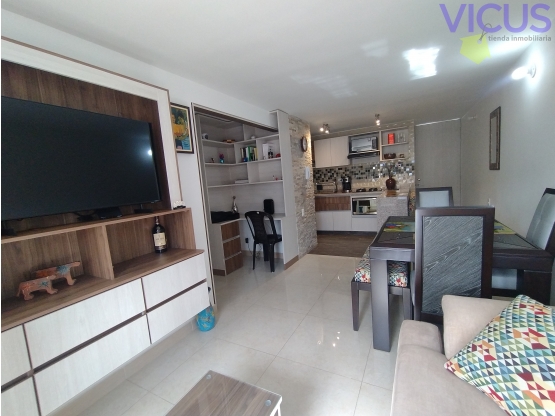 HERMOSO APTO DE DOS ALCOBAS Y DOS BAÑOS CON TERMINADOS DE EXCELNTE CALIDAD. SALA CON MUEBLE DE TV, COCINA TOTALMENTE ENCHAPADA AL IGUAL QUE LOS DOS BAÑOS, APTO CON BALCON , LUZ LED, MUEBLES EN PERFECTO ESTADO ESTÁ COMO PARA ESTRENAR. CUENTA ADEMAS CON PARQUEADERO CUBIERTO Y DEPOSITO.