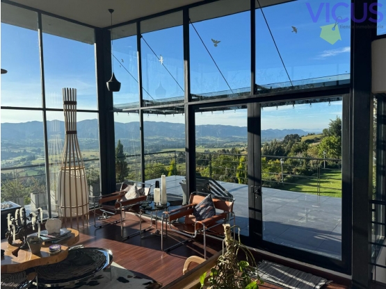 La casa principal ofrece un ambiente espacioso y luminoso. La sala y el comedor permiten una vista panorámica espectacular de las montañas que rodean la propiedad. Tiene 2 habitaciones y 2 baños completos, actualmente la segunda habitación está abierta y se usa como estudio, con posibilidad de cerrarla. Cuenta con 3 terrazas, la primera con jacuzzi es el lugar perfecto para relajarse y disfrutar. Las otras 2 terrazas, te ofrecen vistas panorámicas. la casa tiene cocina moderna, sala comedor y una gran alacena para almacenar alimentos y artículos de cocina. La otra casa de huéspedes tiene una superficie de 90 m2 y consta de 2 habitaciones y 2 baños. Esta segunda casa se encuentra dividida de tal forma que la zona posterior contiene la casa del mayordomo. También tiene parqueo para 8 a 10 carros y Para los amantes de la equitación cuenta con una pesebrera de 89 m2, para tres caballos, cuarto de aperos y baño. Adicional la finca tiene patio de ropas independiente, y un comedor exterior cubierto con una vista inigualable, las zonas planas para caminar son ideales para disfrutar los jardines y la vista. Los servicios públicos se encuentran completos con luz proveniente de transformador y poste propio, agua del acueducto veredal que surte de los tanques principales que se encuentran en la finca contigua, adicional tiene 3 tanques de reservas y motobomba. La casa solo queda a 1.2 kilometros de la vía principal hacia la montaña y recientemente el municipio completó la placa huella de la mayor parte del acceso, por lo que cuenta con un acceso seguro y pavimentado.