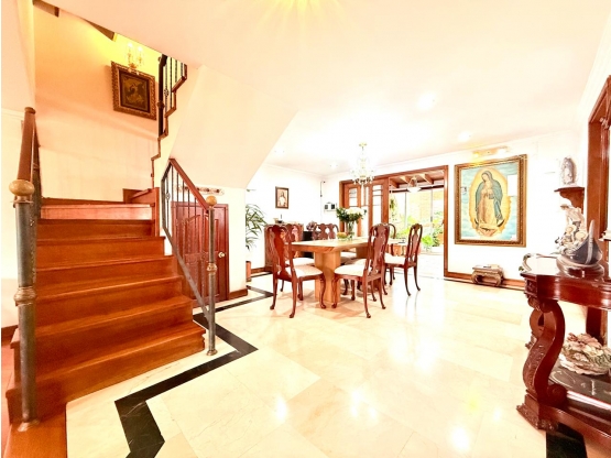 TERCER PISO: Hermoso family room Doble Altura con chimenea Natural y salida a terraza, estudio independiente Biblioteca empotrada en madera maciza, y 4ta alcoba con baño privado. Cuenta con depósito en altillo, 2 parqueaderos lineales independientes.
