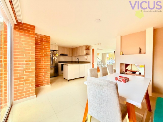Casa Esquinera de 121 mt2 con área verde. Primer piso amplia área social con Family room y sala con Chimenea integrada a comedor al frente de cocina abierta, con acceso a 2 amplias terrazas sociales.